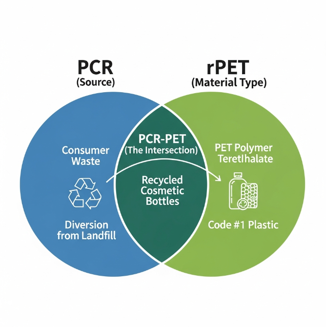 Esta guía completa tiene como objetivo desmitificar la relación entre PCR y PET, proporcionando a las marcas de cosméticos que buspuede crear una Botella cosmética ambiental y consumidores conscientes del medio ambiente con la claridad necesaria para tomar decisiones informadas e impactantes. Definiremos ambos términos, analizaremos sus diferencias principales, analizaremos su desempeño y exploraremos por qué elegir el material adecuado es importante para la historia de sustentabilidad de su marca.